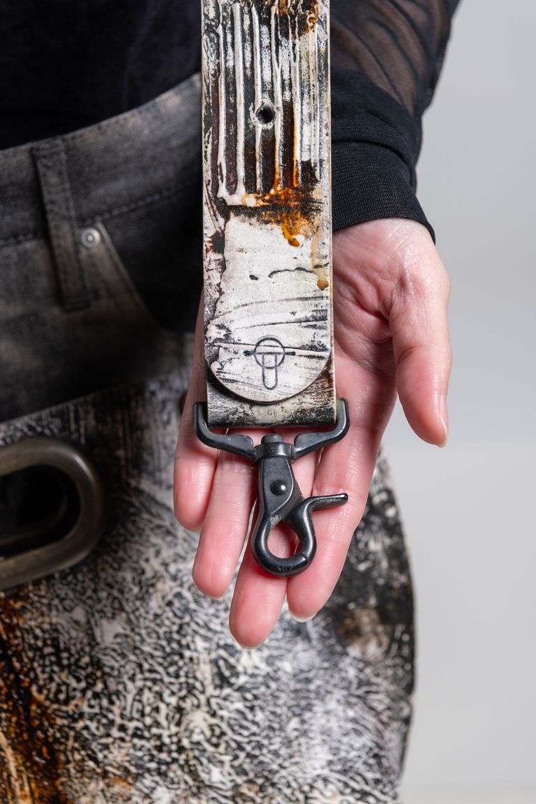 新入荷 一点もの ユニセックス KAGARI YUSUKE 【お取り寄せ可能】レザーショルダーコード [都市型迷彩] ¥38,500 税込 350 ポイント還元 (取り寄せ時の発送目安日:約2〜3ヶ月) この商品は 送料無料 でお届けします 注文 サイズ(採寸)情報 質問する お気に入り お電話でもご注文いただけます!お電話の際は 商品番号:10220 をお知らせください。 電話をかける 076-225-4943 サイズ 長さ 幅 ONE 90-120 4 単位:cm 商品説明 道具としての美しさを、肩に。バッグの“持ち方”を更新する、KAGARI YUSUKEの別売アクセサリー。レザー仕様は本作が初。レザーならではの量感と、艶を抑えた金具の佇まいが、バッグの印象を静かに引き締めます。フックでワンタッチ装着。KAGARI YUSUKEのバッグのほとんどに対応し、手持ちのバッグをショルダー仕様へ拡張できます。さらに、1本あれば複数のカガリユウスケのバッグで付け替えて使えるのも魅力。バッグを増やしても、ショルダーの選択肢はこれ1本で繋がっていきます。長さは90〜120cmで調節可能。斜めがけ〜肩掛けまで、装いとシーンに合わせて最適な位置へ。道具、彫刻、時間。KAGARIYUSUKE 2025 Collection昨夏の終わり、燃え尽きに似た小さな不安の上に、三つの単語が浮かんで離れなくなった。道具、彫刻、時間。意味はまだ掴めない。けれど、逃してはいけない響きだけは確かにあった。理解できないまま作品をつくり、言葉を書き、写真を選び、街を眺め、本を読み、準備を進めた。途中でロラン・バルト『明るい部屋』を読んだ。読み終えた瞬間、思わず本を抱きしめた。鮮明なのに、他者と交換できない質。感動や愛だけでは説明のつかない混乱。それでも表現者として、体験を何かの形へ変換しなくてはならない。その混乱を取っ手にして、私は作り続けた。今、ようやく少しだけ分かる。この三語は、私がこれまでやってきたこと、そしてこれからもやり続けることを、最も簡潔に言い表した言葉だった。道具、彫刻、時間。カガリユウスケが愛され続ける理由カガリユウスケのコンセプトは「壁を持ち歩く。」カバンとは、とても個人的な「持ち歩く空間」である。中身は部屋、外は外壁。そんな観点から、携帯する空間の再構築とその空間を構成する壁としてのカバンを製作しています。具体的に、革の表面を建築用のパテでコーティングし、しっくいの壁のような質感を表現した革製品を展開しています。一つ一つハンドメイドで仕上げられ、塗り方や彫り方によって一点一点異なる表情のため、自分だけの特別感を感じることができます。つい触っていたくなる独特の凹凸ある手触りや時間の経過とともにパテが剥離していく感じがクセになります。使い込むにつれて表面にツヤでき、なめらかになっていく経年変化もお楽しみいただけますので、1年、2年...とその先どんな表情を魅せてくれるのか継続してワクワクさせてくれます。また、表面に使用しているパテには防水効果もついており、防水スプレーなどの手入れに手間のかからない素材となっています。 都市型迷彩のお取り寄せ注文について ※都市型迷彩のお取り寄せ注文の場合、汚しの色味や柄の強さなど、ご希望のイメージに多少近づけることが可能です。ご希望のイメージがありましたら、備考欄にご記入ください。例色味:茶系 or 青系柄:激しめ or 弱め特にご希望のイメージがなければ、メーカーおまかせとなります。 カガリユウスケの経年変化について カガリユウスケの革の経年変化を詳しく知りたい方は「カガリユウスケ (KAGARI YUSUKE) の経年変化。」をご覧ください。 ラッピングについて 当店では、ギフトラッピングを有料(220円)で承っております。ご購入手続きを進めますと「ご注文情報の入力」ページに、ラッピングの有無を選択する箇所がございます。ラッピングをご希望の際は「希望する / 220円」のボタンを選択してください。なお、ラッピングありでご購入された商品の返品はお受けできませんので、あらかじめご了承ください。より詳しくは、ギフトラッピングについてをご確認ください。 カガリユウスケの作品について カットした革に建築用のパテを塗り、2週間ほど寝かして乾かす。 ↓その後、デザイナーによって組立られるが、ミシン目を隠すために再度建築用のパテを塗る。※この作業には「壁にミシン目は存在しない」というこだわりが現れています。 ↓ 再度2週間寝かせて、仕上げのニスを塗って完成!どれも製作に最低1ヶ月以上かけて作られた作品です。ぜひ一度手にしてみて下さい。※作品の性質上、塗り方によって一点一点表情が異なります(画像と表情が異なる場合がございます)。また、折り曲げた部分などあらかじめひび割れや剥離を起こしている場合がございます。使用していくにつれてそれらが現れる可能性もございます。最終的には、その経年変化を楽しんでいただく作品ですので、ご了承ください。 「都市型迷彩」について 下記、カガリユウスケより。白壁の上に”ウェザリング”と呼
